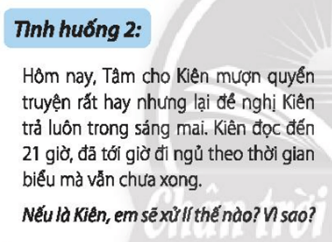 → Cách xử lí: Nếu là Kiên, em sẽ đi ngủ. Sau đó, ngày mai đến lớp bảo Tâm cho mượn truyện để đọc nốt.