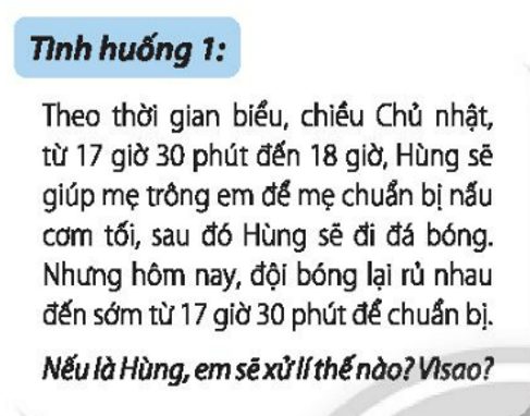 → Cách xử lí: Nếu là Hùng, em sẽ xin mẹ cho buổi nay đi đá bóng với các bạn.