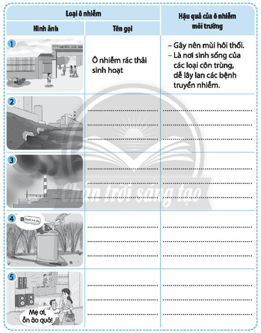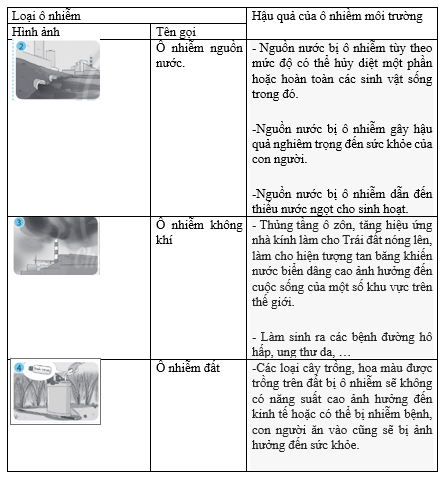 Vở bài tập HĐTN lớp 3 trang 50 Nhiệm vụ 3: Hoàn thiện bảng sau để xác định những hậu quả do ô nhiễm môi trường gây ra.
