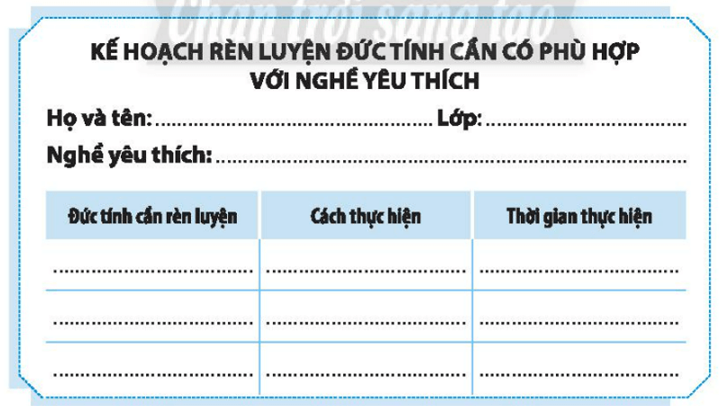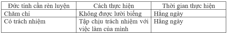 Vở bài tập HĐTN lớp 3 trang 58 Nhiệm vụ 6: Lập kế hoạch rèn luyện đức tính cần có phù hợp với nghề em yêu thích.