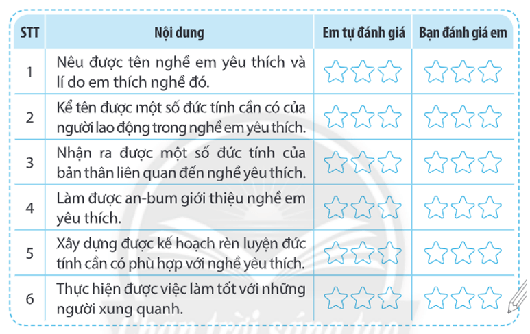 1. Em tự đánh giá và bạn đánh giá em rồi tô màu vào các ngôi sao tương ứng.