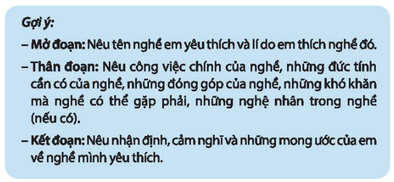 Vở bài tập HĐTN lớp 3 trang 57 Nhiệm vụ 5: Viết đoạn văn giới thiệu về nghề em yêu thích