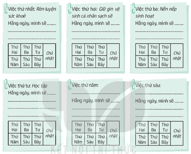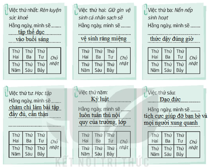 Viết vào ô thích hợp những việc em đã làm được theo bản kế hoạch.