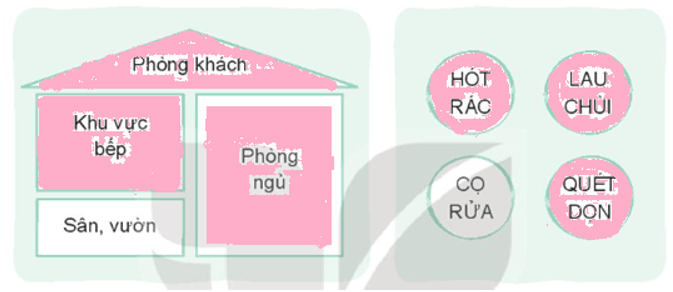 Em hãy tô màu những nơi trong nhà đã được em cùng người thân dọn dẹp vệ sinh và những việc em đã làm: