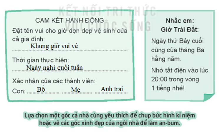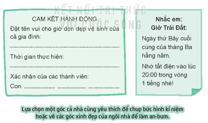 Vở bài tập HĐTN lớp 3 trang 36 Bài 2: “Cam kết” thời gian dọn vệ sinh của gia đình và ghi vào lịch để cả nhà cùng nhớ