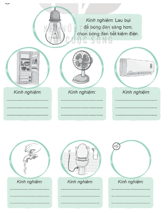 Vở bài tập HĐTN lớp 3 trang 42 Bài 2: Kinh nghiệm của gia đình em để sử dụng các thiết bị điện, nước sao cho tiết kiệm