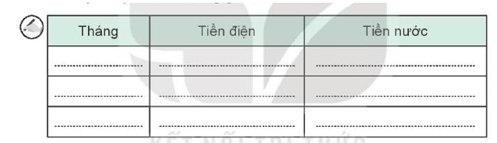 Vở bài tập HĐTN lớp 3 trang 43 Bài 3: Ghi lại tiền điện, nước trong 3 tháng tới để thấy kết quả của việc tiết kiệm điện, nước trong gia đình.