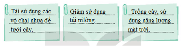 – Theo em, những việc em và người thân thực hiện sẽ giúp ích cho môi trường xanh hơn, sạch hơn, hạn chế được các chất thải không phân hủy thải ra môi trường.