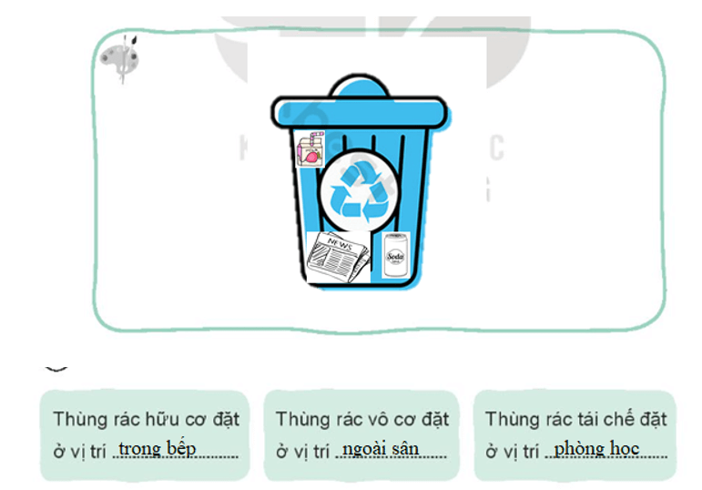 – Dùng các hình vừa vẽ, viết để trang trí thùng đựng rác.