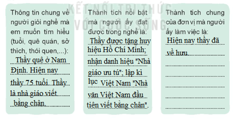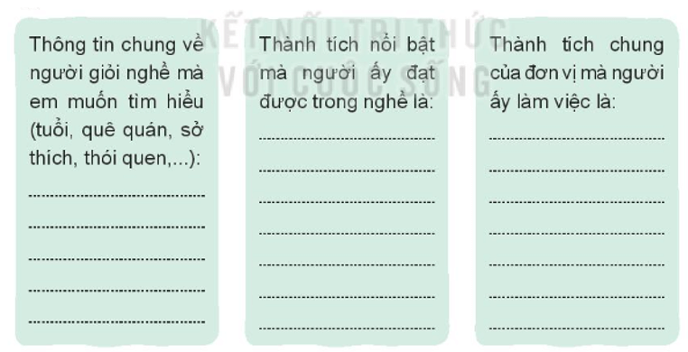 − Thông tin về một người giỏi nghề mà em yêu thích.