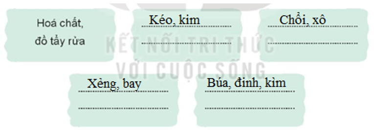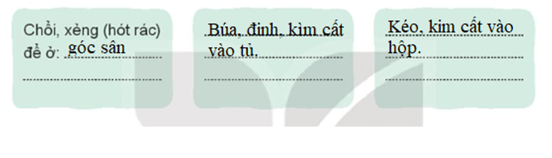Vở bài tập HĐTN lớp 3 trang 71 Bài 2: Kiểm tra các dụng cụ lao động và thống nhất với người thân về vị trí cất dụng cụ trong nhà