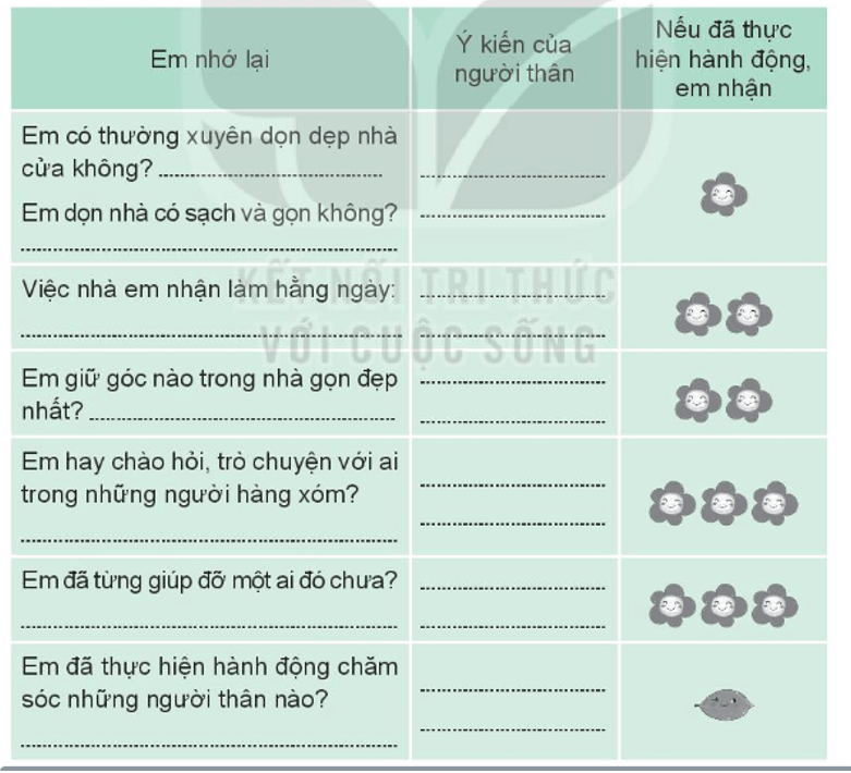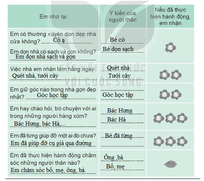 − Cùng người thân nhớ lại những hoạt động trải nghiệm em đã thực hiện trong năm vừa qua và đánh giá kết quả hoạt động đó.