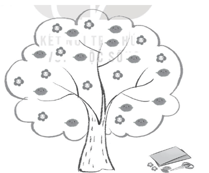 Em hãy vẽ hoặc cắt dán những bông hoa, những chiếc lá vào Cây trải nghiệm của mình nhé!