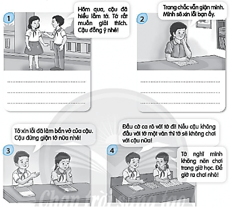Nhiệm vụ 6: Ghi lại cách giải quyết khi có vấn đề xảy ra trong quan hệ với bạn bè vào chỗ trống dưới mỗi tranh