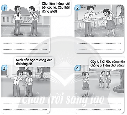 Nhiệm vụ 5: Viết vấn đề thường xảy ra trong quan hệ với bạn bè vào chỗ trống dưới mỗi tranh