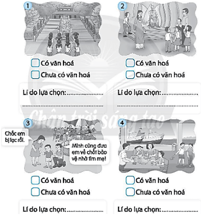 - Tranh 1: Đánh dấu x vào ô Chưa có văn hóa