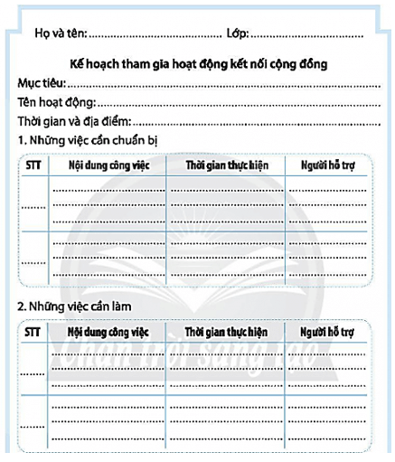 Nhiệm vụ 5: Hoàn thành kế hoạch tham gia hoạt động kết nối cộng đồng của em theo gợi ý