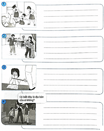 Nhiệm vụ 3: Viết đoạn văn mô tả nội dung của mỗi tranh sau và cho biết vì sao trẻ em trong các tranh này có nguy cơ bị xâm hại thân thể?