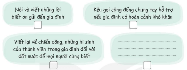 - Theo em, em có thể thực hiện hành động đền ơn đáp nghĩa nào đối với gia đình?