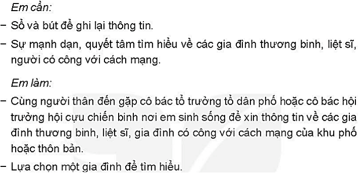 Nhiệm vụ 1: Trao Cùng người thân tìm hiểu thêm về gia đình thương binh, liệt sĩ hoặc người có công với cách mạng ở địa phương