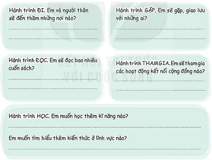 Nhiệm vụ 3: Xây dựng kế hoạch trải nghiệm mùa hè của em