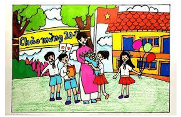 Em ấn tượng nhất là tác phẩm của bạn Vy. Bạn đã vẽ một bức tranh rất ý nghĩa để dành tặng thầy cô