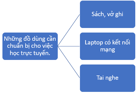 Tìm hiểu và vẽ sơ đồ tư duy những đồ dùng cần chuẩn bị cho việc học trực tuyến.
