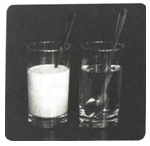b) Em nhìn thấy phần dưới của chiếc thìa trong cốc nước. Vì dựa vào tính chất của nước: Nước trong suốt không màu nên ta có thể dễ dàng quan sát thấy còn sữa có màu trắng đục nên không thể nhìn thấy phần dưới của chiếc thìa.