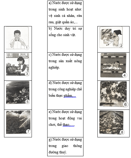 Câu 5 trang 4 VBT Khoa học tự nhiên 4: Nối hình thể hiện vai trò của nước với ô chữ cho phù hợp.