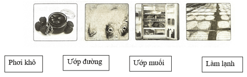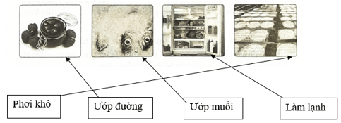 Câu 8 trang 46 VBT Khoa học tự nhiên 4: Nối hình thực phẩm với cách bảo quản thực phẩm đó để tránh bị nhiễm nấm mốc.