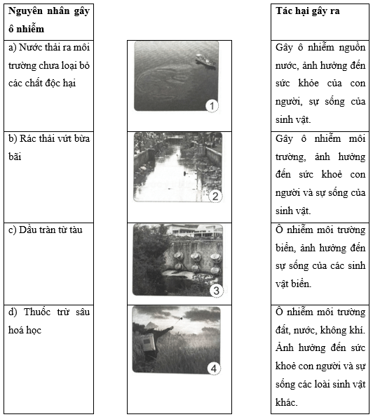 a) Nối hình nguồn nước ô nhiễm với nguyên nhân gây ô nhiễm nguồn nước đó.