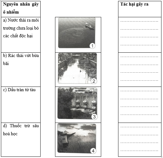 b) Viết tác hại của nguồn nước bị ô nhiễm vào ô trống bên cạnh.