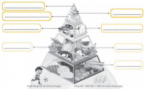 Câu 3 trang 74 VBT Khoa học lớp 4: Hãy hoàn thành tháp dinh dưỡng dưới đây bằng cách điền vào chỗ (...) sao cho phù hợp.