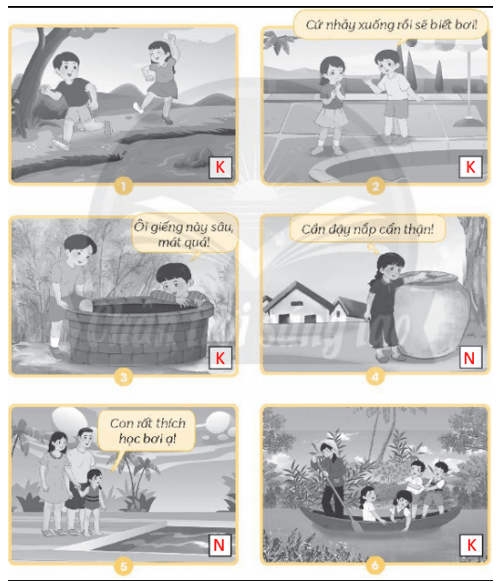 Câu 1 trang 80 VBT Khoa học lớp 4: Viết chữ N vào những việc nên làm và chữ K vào những việc không nên làm để phòng tránh đuối nước.