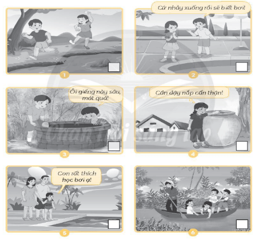 • Em không nên làm những việc như hình 1, 2, 3, 6 vì các bạn chơi đùa gần ao, hồ, khu vực có nước sâu, bể nước không có nắp đậy và đi thuyền không mặc áo phao.