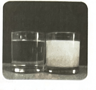 - Cốc bên trái chứa nước, cốc bên phải chứa sữa.