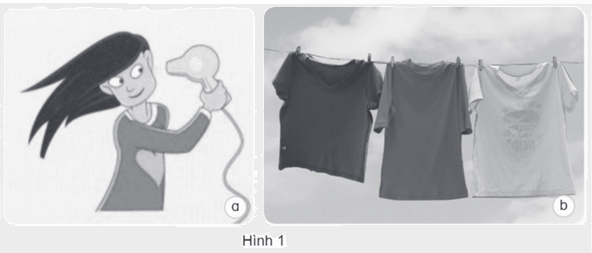 Câu 2 trang 7 VBT Khoa học lớp 4: Người ta thường sấy tóc sau khi gội đầu (hình a) và phơi quần áo ướt dưới ánh nắng mặt trời (hình b).