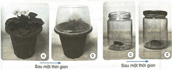 a) Cho biết điều kiện sống khác nhau của cây ở hình a và b, con gián ở lọ c và d.
