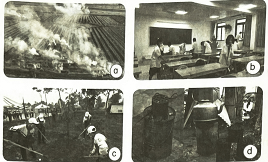 a) Người ta có thể dập tắt các đám cháy nhỏ, mới cháy bằng cách chùm chăn hoặc khăn dày lên đám cháy (hình a), vì ngăn chặn được (1) .............. đang duy trì (2)……….