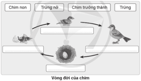 Câu 2 trang 42 VBT Khoa học lớp 5: Sử dụng các từ ngữ đã cho điền vào mỗi giai đoạn trong vòng đời của các động vật trong hình cho phù hợp.
