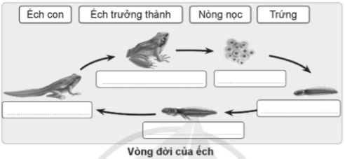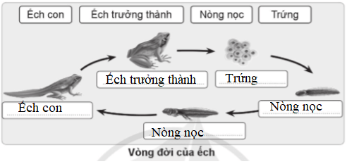 b) Ở ếch: Trứng - nòng nọc - ếch con - ếch trưởng thành.