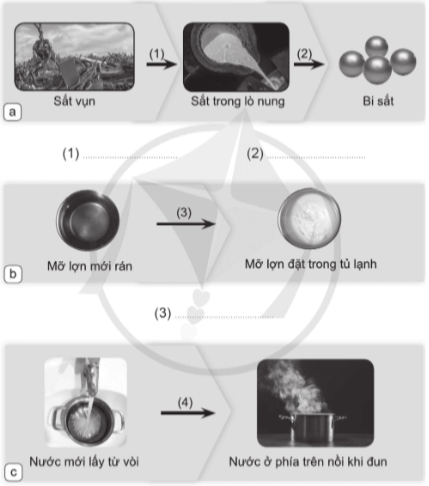 a) Bước (1): Có sự biến đổi trạng thái của các nguyên liệu.