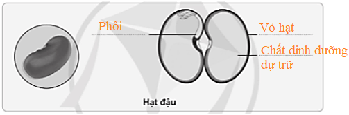 Câu 1 trang 36 VBT Khoa học lớp 5: Chú thích tên các bộ phận của hạt đậu trong hình sau.
