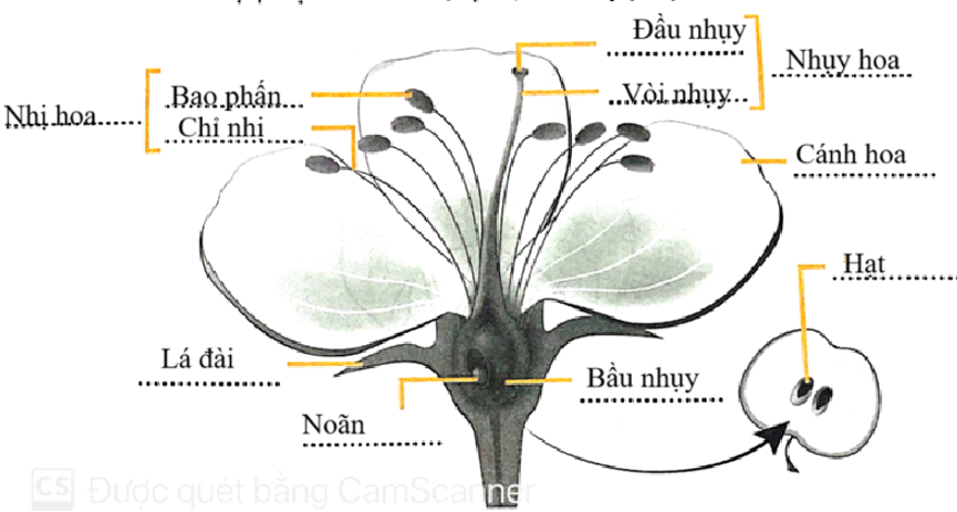 a) ……………….là cơ quan sinh dục đực,…………….là cơ quan sinh dục cái của hoa.