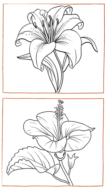 Câu 5 trang 36 VBT Khoa học lớp 5: Tô màu và chú thích các bộ phận thuộc cơ quan sinh sản của hoa li và hoa dâm bụt.