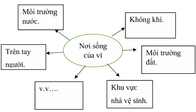 Câu 4 trang 52 VBT Khoa học lớp 5: Vẽ và chú thích các hình dạng của vi khuẩn vào khung dưới đây.