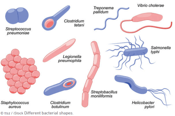 a) Hình dạng của vi khuẩn: Vi khuẩn có hình dạng đa dạng như dạng hình que, hình xoắn,….