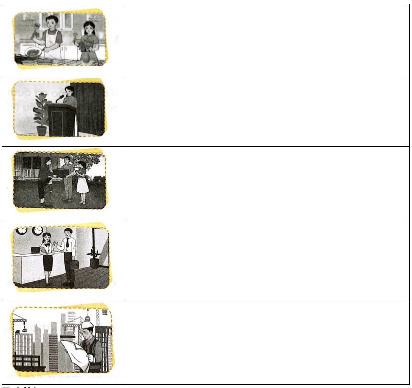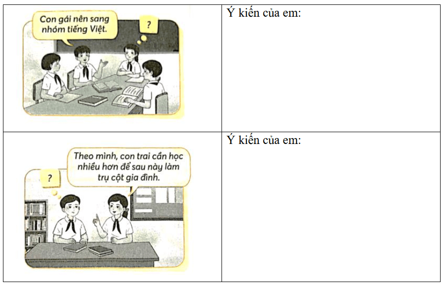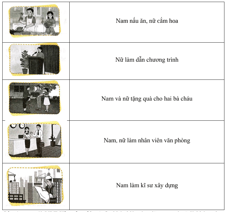 Câu 3 trang 62 VBT Khoa học lớp 5: Viết nội dung mô tả những đặc điểm xã hội nổi bật của nam và nữ trong các hình dưới đây vào chỗ (…).