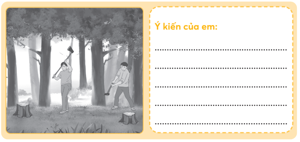 Em sẽ khuyên các bác dừng tay không được chặt phá cây và báo cáo sự việc cho kiểm lâm.