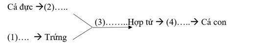 Câu 4 trang 44 VBT Khoa học lớp 5: a) Sử dụng các từ/cụm từ: thụ tinh, tinh trùng, phôi, cá cái để điền vào chỗ..... hoàn thành sơ đồ mô tả sự sinh sản ở cá.